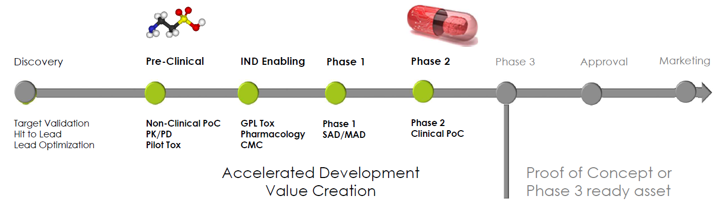 The business model is based on discovering drugs and developing drug until phase 2a “Proof of concept" (PoC) and licensing them to the best possible commercial partner.